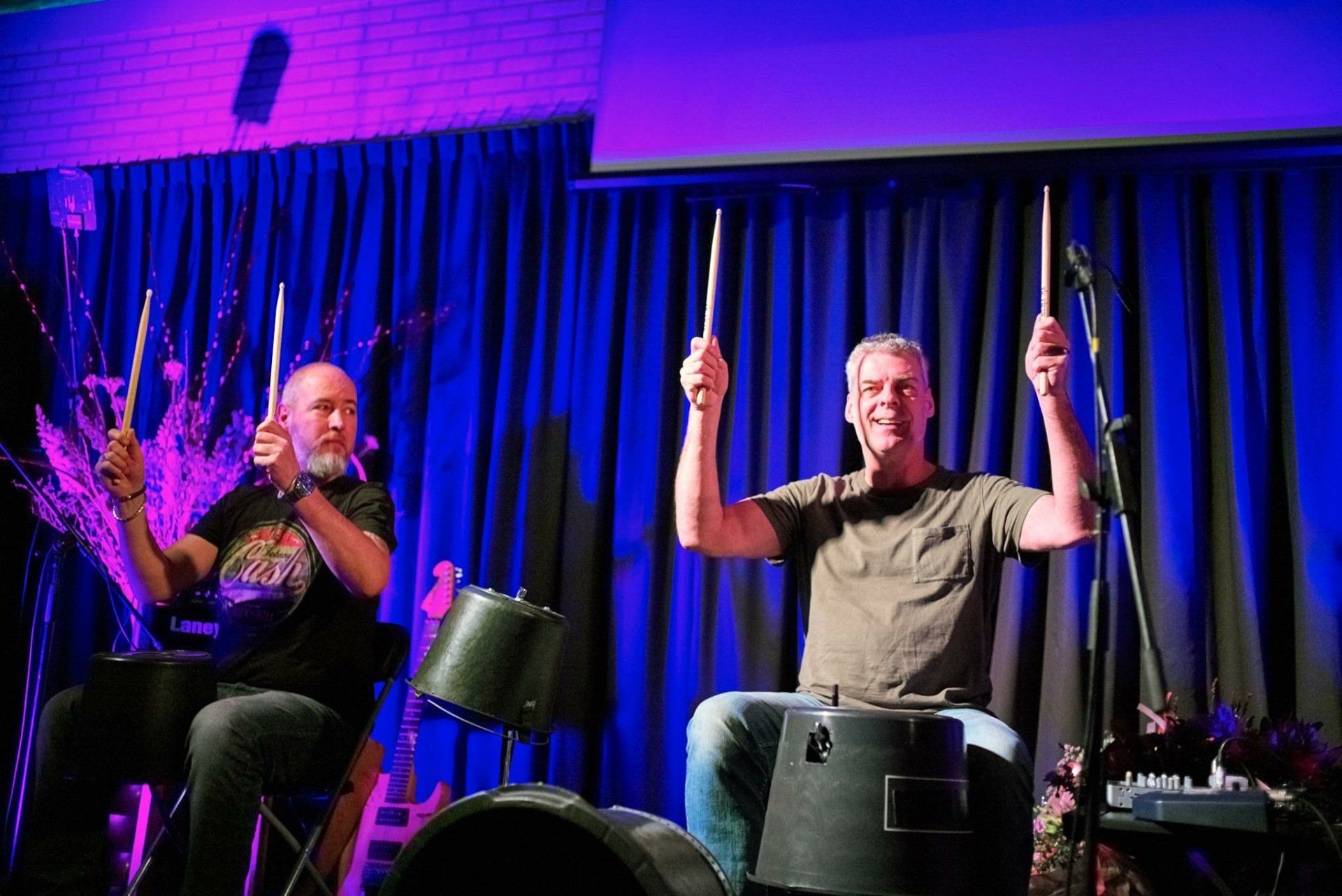 Tudor Rutjes en Mark de Grauw geven op unieke, energieke en educatieve wijze een workshop EmmerTrommelen.
